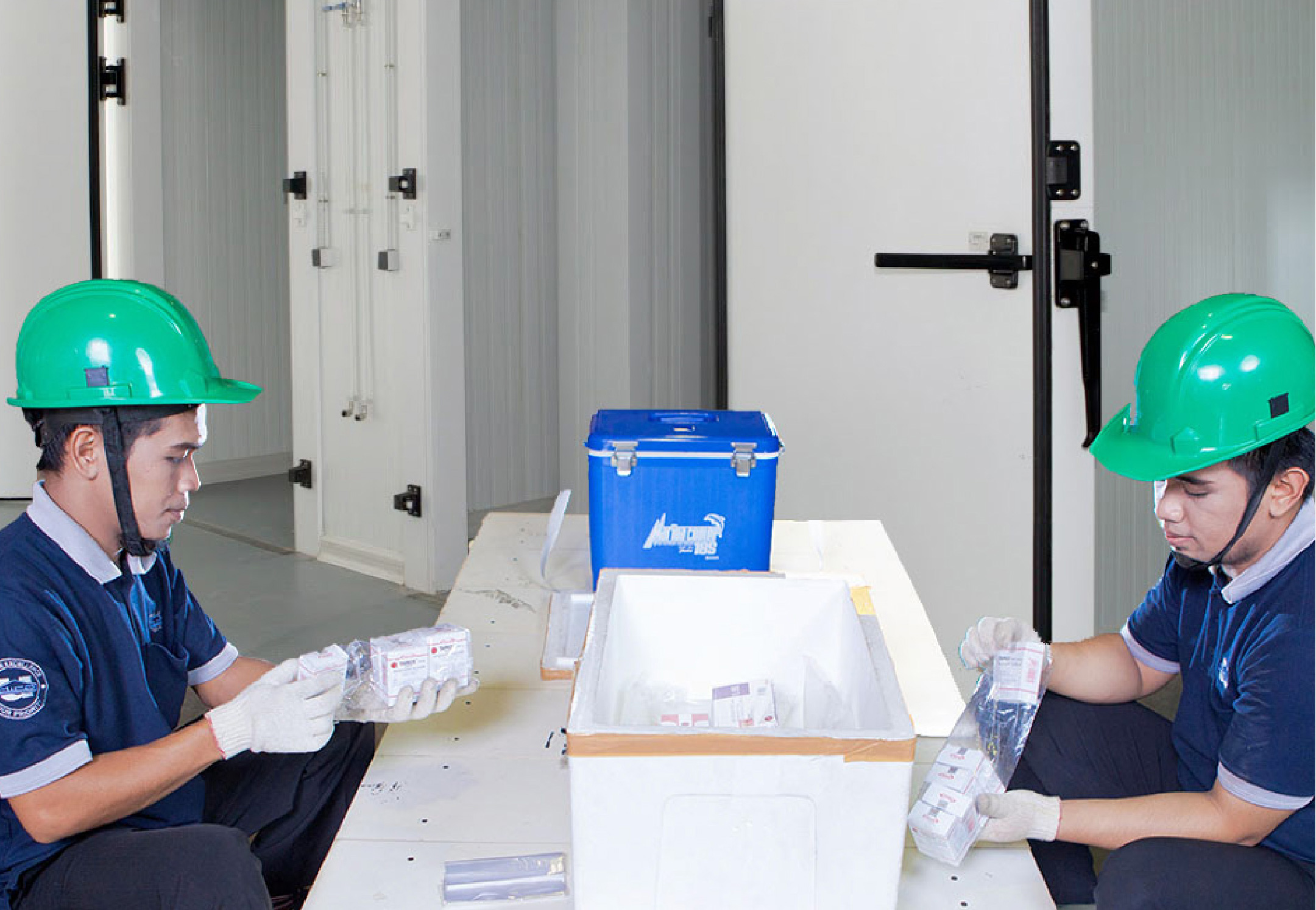 To ensure product quality throughout our distribution process, we utilize a ‘cold chain’ delivery system of transporting and storing medicines within a temperature range specified for each product. Our cold chain system is continually monitored and validated from our warehouses to our delivery points.